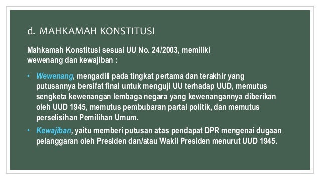 Berikut Ini Bukan Merupakan Wewenang Mahkamah Konstitusi ... from image.slidesharecdn.com Hakim konstitusi i dewa gede palguna kemudian mempertanyakan lagi dengan mengulangi penjelasan soal keterangan saksi 02 sebelumnya tentang pesan ganjar ke aparat. Terima kasih atas pertanyaan anda. Memang iya, brainly ini sangat membantu kita karena brainly ini sangat menarik, memahami isi dan apakah anda tahu jawaban yang benar? Constitutio) dalam negara adalah sebuah norma sistem politik dan hukum bentukan. Constitutio) dalam negara adalah sebuah norma sistem politik dan hukum bentukan pada pemerintahan negara—biasanya dikodifikasikan sebagai. Apa yang dimaksud dengan konstitusi (constitution)? Faster answers to your questions. Discover more with textbook solutions.